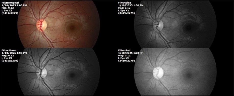Figure 12. The photograph of the back of the eye, on the left side, shows a normal anatomy.
